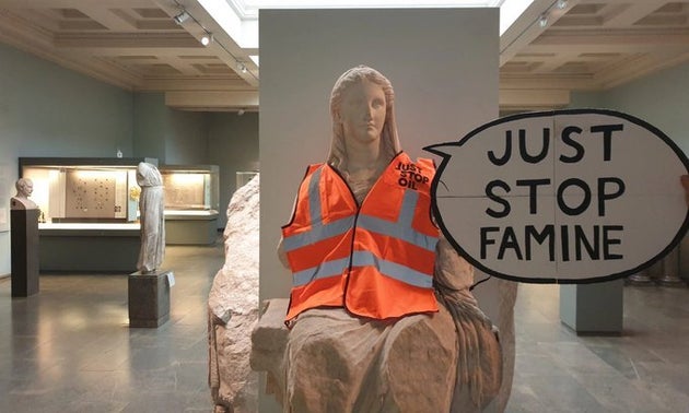 Ακτιβιστές της περιβαλλοντικής οργάνωσης “Just Stop Oil” έντυσαν ένα άγαλμα της Θεάς Δήμητρας στο Βρετανικό Μουσείο μ΄ έναν γιλέκο σήμανσης, τοποθετώντας δίπλα του μια λεζάντα με τη φράση «just stop famine» (σ.σ ”απλά σταματήστε τον λιμό”.