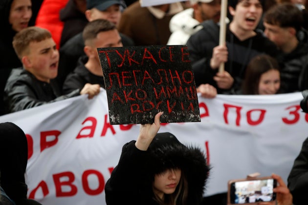 Οι πολίτες φώναζαν ”δολοφόνοι” και κρατούσαν πανό με επιγραφές: ”Οι άνθρωποι που ήταν επιφορτισμένοι με την προστασία μας μας σκότωσαν”, ”Η δολοφονία των νέων είναι η δολοφονία του μέλλοντος”, ”Απαιτούμε δικαιοσύνη”.