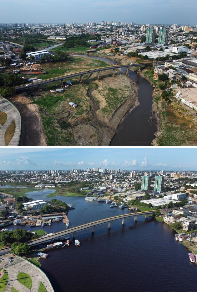 Δραματική συρρίκνωση του Αμαζονίου λόγω ξηρασίας – Αποκαρδιωτικές εικόνες από το πριν και το μετά
