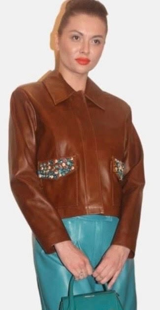 Δερμάτινο εκρού σύνολο με λεπτομέρεια στο τελείωμα από γούναΕκτός από τις κλασικές γραμμές όμως, η Έλενα Κουλαουζίδου, εμπλούτισε τη συλλογή και με κομμάτια πιο σύγχρονα, όπως οι υπέροχες δερμάτινες χρωματιστές ζιπ κιλότ συνδυασμένες με σακάκια ίδιας απόχρωσης και δέρματος, οι κεντημένες φούστες σε γραμμή άλφα, αλλά και τα κοντά μεταλλιζέ τζάκετ που εντυπωσίασαν το κοινό της. Πολλά από τα ρούχα ήταν ραμμένα με αληθινές πέτρες Swarovski προσθέτοντας επιπλέον λάμψη στα βαρύτιμα υφάσματα της.