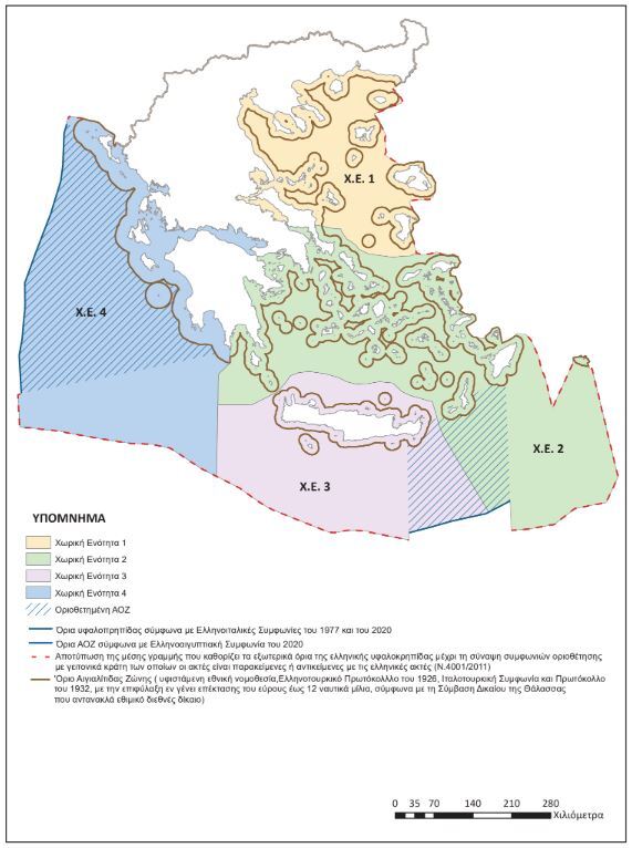 Να σημειωθεί, ότι η ΑΟΖ στη θαλάσσια περιοχή του Ιονίου, των Ιονίων Νήσων και μέχρι το Ακρωτήριο Ταίναρο της Πελοποννήσου είναι αποτέλεσμα της συμφωνίας Ελλάδας – Ιταλίας η οποία υπεγράφη το 2020.