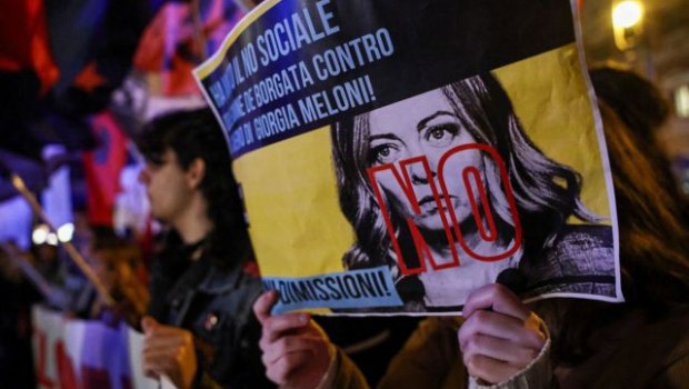 Η πρωθυπουργός της Ιταλίας Τζόρτζια Μελόνι έκανε δεκτή την παραίτηση του υφυπουργού Δικαιοσύνης Αντρέα Ντελμάστρο και της Τζούζι Μπαρτολότσι, υπεύθυνης του ιδιαίτερου γραφείου του υπουργού Δικαιοσύνης (φωτογραφία του Reuters/Matteo Minnella, επάνω, από τους πανηγυρισμούς για την επικράτηση του «Οχι» στο δημοψήφισμα για τη μεταρρύθμιση του δικαστικού συστήματος).
