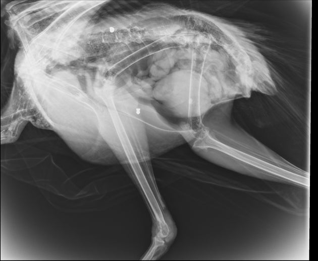 Με έκπληξή μας, εμφανίζοντας την ακτινογραφία, είδαμε δυο βολίδες αεροβόλου κι ένα σκάγι μέσα στο σώμα του!