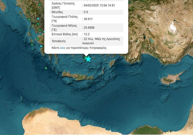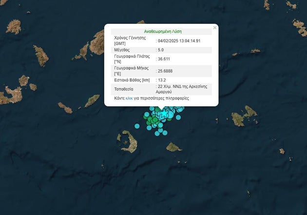 Σε απόσταση 22 χιλιομέτρων στη θαλάσσια περιοχή νοτιοδυτικά της Αμοργού και σε εστιακό βάθος 13,2 χιλιομέτρων εντοπίζεται το επίκεντρο της ισχυρής σεισμικής δόνησης που καταγράφηκε στις 13:04′ το μεσημέρι, την Τρίτη 4 Φεβρουαρίου.