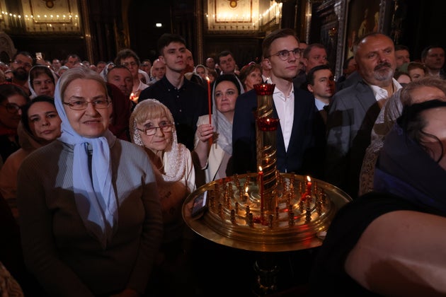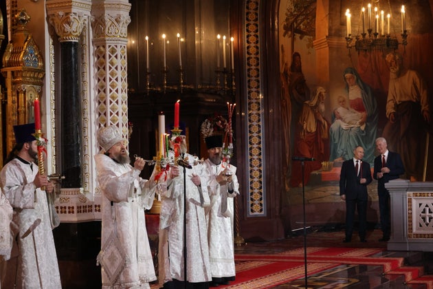 Μερικές ώρες αφού κήρυξε μονομερή κατάπαυση του πυρός για το Πάσχα, για την οποία το Κίεβο είπε πως είναι μόνο λόγια καθώς οι μάχες συνεχίζονται, ο Πούτιν και ο Σομπιάνιν μετέβησαν στην κύρια εκκλησία της Μόσχας για την Ανάσταση.