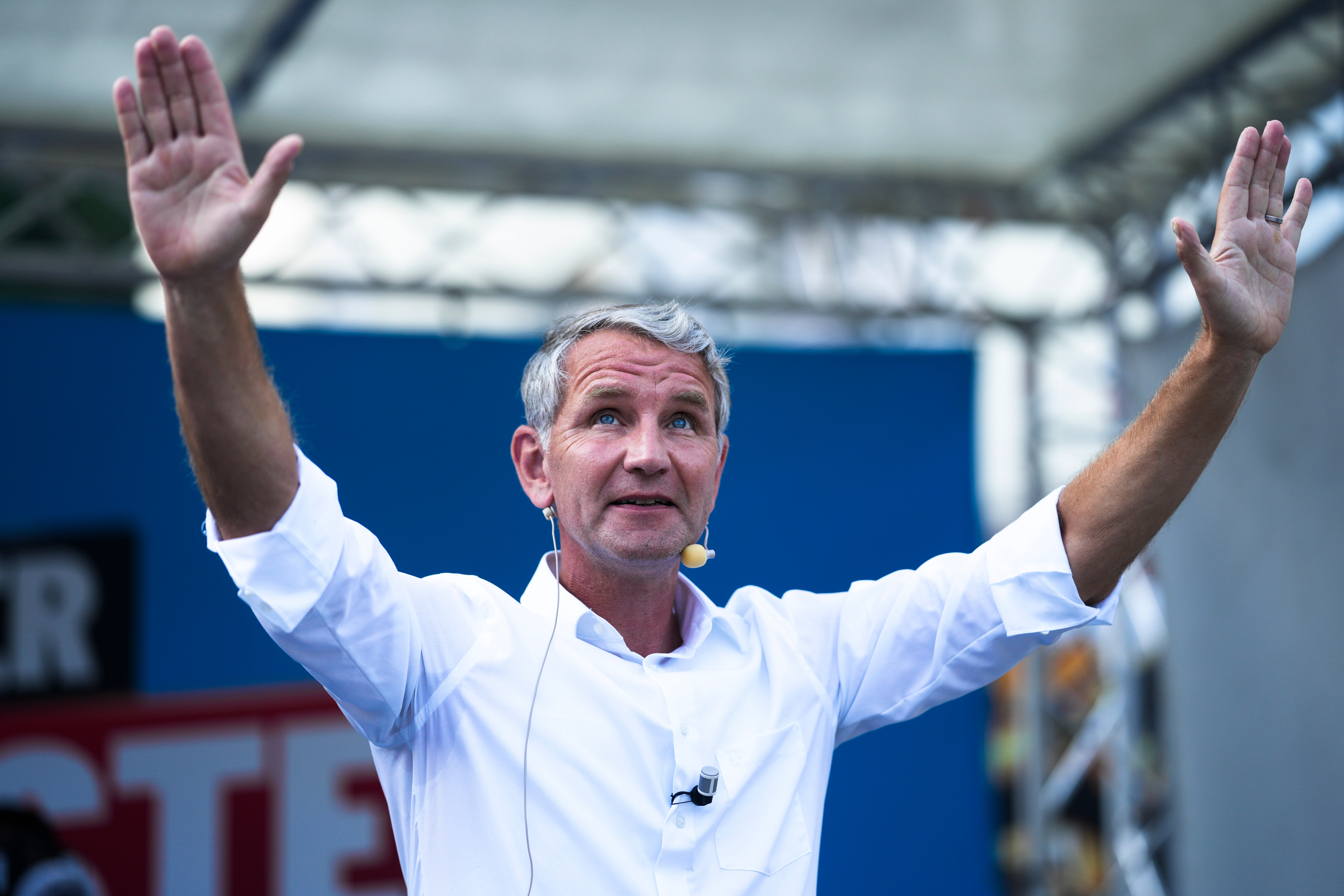 O επικεφαλής του ψηφοδελτίου του ΑfD στην Θουριγγία Bjoern Hoecke, τον Μάιο του 2016 σε πολιτική συγκέντρωση. Εκείνη την περίοδο δικαζόταν για την χρήση ναζιστικών συμβόλων. Μέχρι και σήμερα το AfD χαρακτηρίζεται επίσημα από το Ομοσπονδιακό Γραφείο Προστασίας του Συντάγματος ως «εξακριβωμένα δεξιά εξτρεμιστική παράταξη»″Οι εκλογές συνιστούν μεγάλη αποτυχία για τον κυβερνητικό συνασπισμό, αλλά και για την φιλελεύθερη δημοκρατία – κέρδισαν η AfD και η BSW, δύο κόμματα που δεν έχουν απολύτως καμία σχέση με την φιλελεύθερη άποψη”, γράφει το περιοδικό Der Spiegel προσθέτοντας ότι η εκλογική βραδιά στα δύο κρατίδια αντανακλά ”την κρίση της φιλελεύθερης δημοκρατίας”. Ειδικά για τους ψηφοφόρους της AfD και της BSW, τονίζεται ότι ”οι φιλελεύθερες ιδέες είναι άγνωστες σε αυτά” και θα απαιτηθεί πολύς χρόνος για κερδίσουν ξανά τους ψηφοφόρους τα άλλα κόμματα.