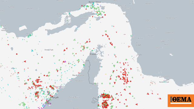 Σύμφωνα με τη MarineTraffic, μεγάλος αριθμός δεξαμενόπλοιων έχει αγκυροβολήσει σε ασφαλή απόσταση βορειοδυτικά και νότια των Στενών, ενώ περιορισμένος αριθμός συνεχίζει τη διέλευση. Η εικόνα αποτυπώνει την επιφυλακτικότητα των πλοιοκτητών, καθώς πρόκειται για κρίσιμο πέρασμα του παγκόσμιου εμπορίου πετρελαίου.