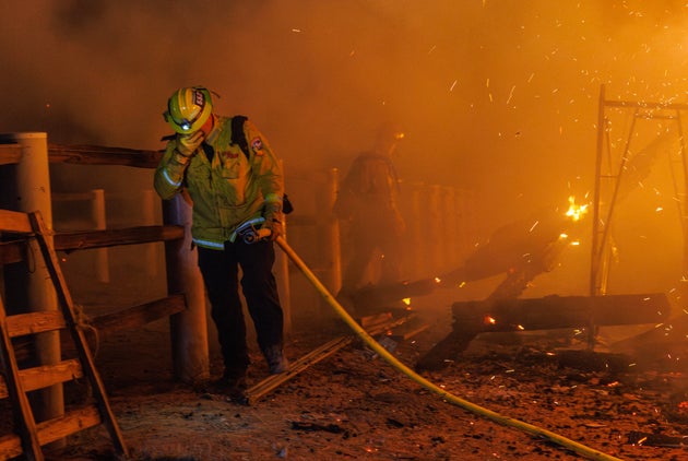 Η «Bridge Fire», η μία από τις τρεις πυρκαγιές που καίνε ανεξέλεγκτα κοντά στη δεύτερη μεγαλύτερη πόλη των Ηνωμένων Πολιτειών, έχει ήδη καταστρέψει δεκάδες σπίτια και έχει κάψει μέσα σε 24 ώρες σχεδόν 200.000 στρέμματα στα υψώματα του Λος Άντζελες.