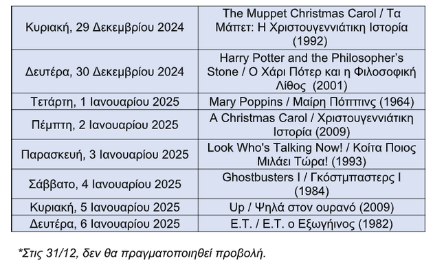 Το πρόγραμμα προβολών έχει ως εξής: