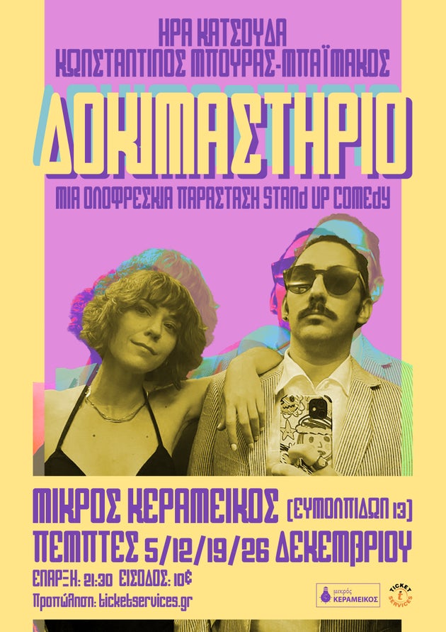 Η Ήρα Κατσούδα με τον Κωνσταντίνο Μπούρα – ΜπαϊμάκοΗ Ήρα Κατσούδα και ο Κωνσταντίνος Μπούρας – Μπαϊμάκος είναι φίλοι και συνεργάτες εδώ και χρόνια. Έχουν μοιραστεί μυστικά, ξενύχτια, πάρτι και δουλειές, αλλά πότε έως τώρα μια από κοινού παράσταση.
