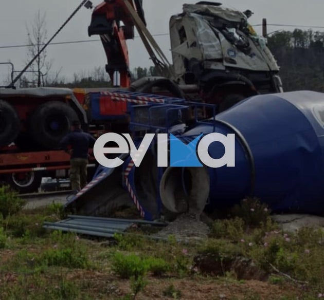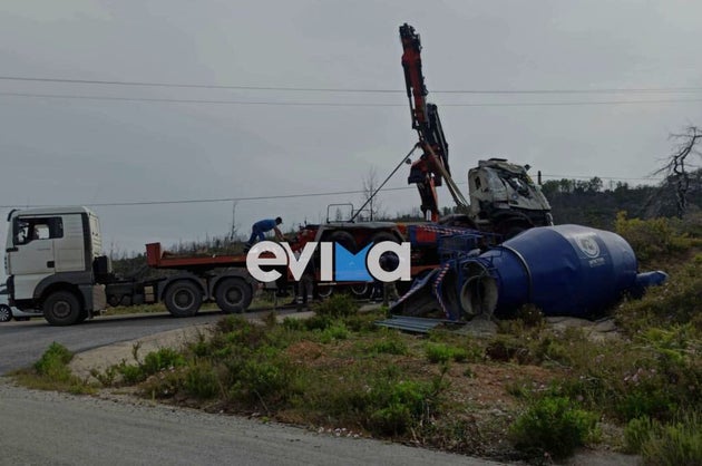 Συγκεκριμένα όχημα βαρέου τύπου, (μπετονιέρα) που μετέφερε μπετόν, εξετράπη της πορείας του και ανατράπηκε στο 85 χλμ της ΕΟ Χαλκίδος- Αιδηψού, λίγα μέτρα πριν τη διασταύρωση προς Δασικό Χωριό.