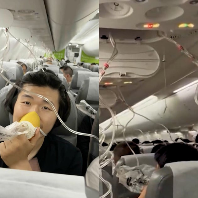 Καθώς η πίεση της καμπίνας έπεφτε, απελευθερώθηκαν οι μάσκες οξυγόνου. Πλάνα από την πτήση δείχνουν εμφανώς ταραγμένους επιβάτες να φορούν μάσκες οξυγόνου, καθώς μια αεροσυνοδός δίνει οδηγίες.