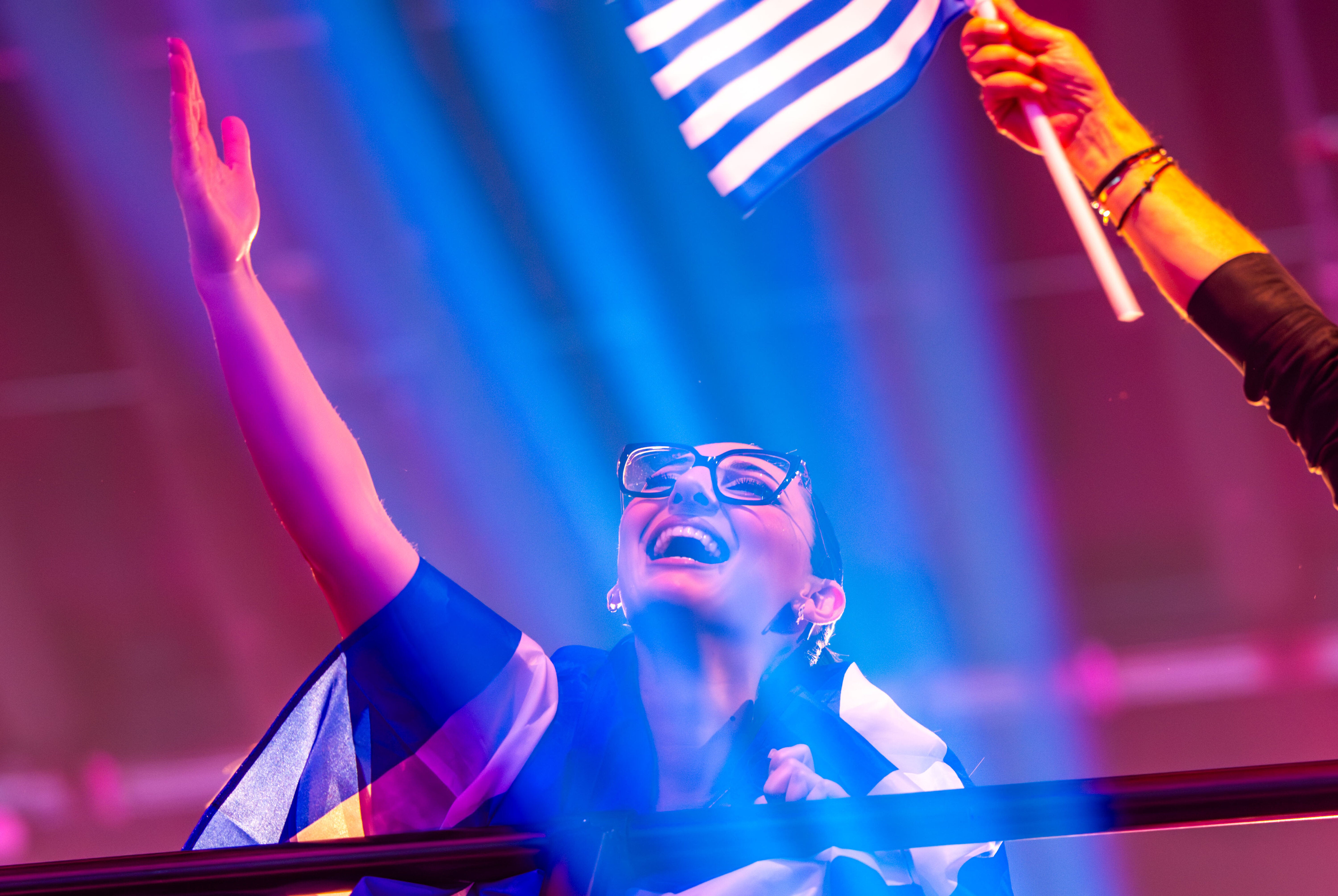 Η Klavdia στη σκηνή του τελικού της Eurovision, Βασιλεία της Ελβετίας, Μάιος 2025. (AP Photo/Martin Meissner)Η «Αστερομάτα» έλαβε το πιο θερμό χειροκρότημα του κοινού με την Klavdia να αποθεώνεται και η ίδια να είναι φανερά συγκινημένη.